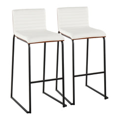 Mason Mara - Contemporary Fixed Height Barstool (Set of 2) - Black / Walnut / White