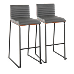 Mason Mara - Contemporary Fixed Height Barstool (Set of 2) - Black / Walnut / Gray