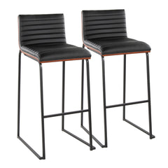 Mason Mara - Contemporary Fixed Height Barstool (Set of 2) - Black / Walnut / Black