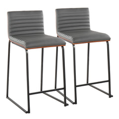 Mason Mara - Contemporary Fixed Height Counter Stool (Set of 2) - Black / Walnut / Gray