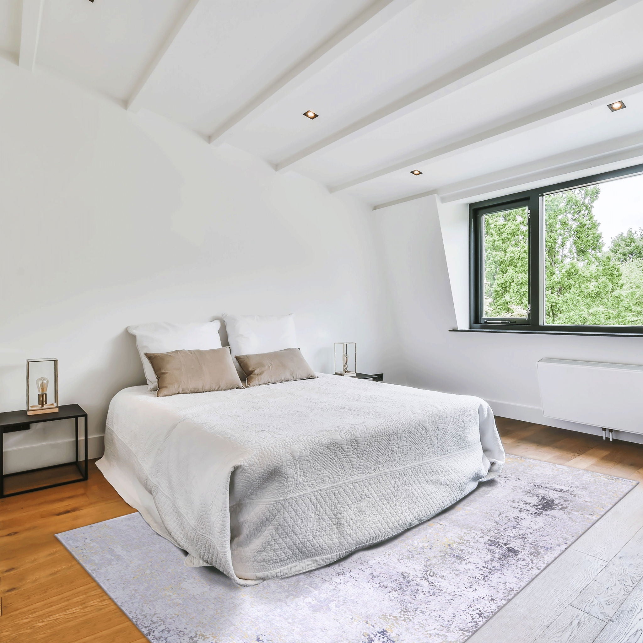 Maval - 4' X 6' Washable Area Rug - Gray / Gold