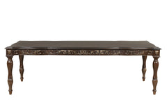 The Royal Classics Maximus Dining Table in cherry is a masterful blend of heirloom craftsmanship and timeless elegance. Meticulously crafted from solid poplar and premium birch veneers, this dining table is designed for enduring beauty and durability, ensuring it will be a treasured piece for years to come. The multi-step cherry finish enhances the rich wood grain, while delicately burnished gold tipping adds a luxurious touch to the intricate carvings. Inspired by Baroque and 18th-century Rococo design, the table's ornamentation brings a regal elegance and sophistication to any dining space. Effortlessly extendable from 76" to 96", the table provides spacious seating for up to 8 guests, making it ideal for large gatherings and family meals. Combining functionality with elegance, this table is perfect for creating memorable dining experiences.