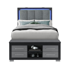 Messa - Queen Bed With Storage And LED Lighting - Black / Gray