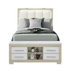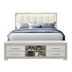 Messa - King Bed With Storage And LED Lighting - Natural / White