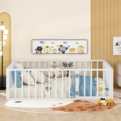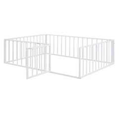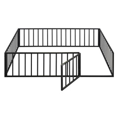 Queen Size Floor Bed Frame With Fence And Door - Black