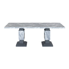 Michelle - Dining Table With Double Pedestal Marble Detailing - Gray