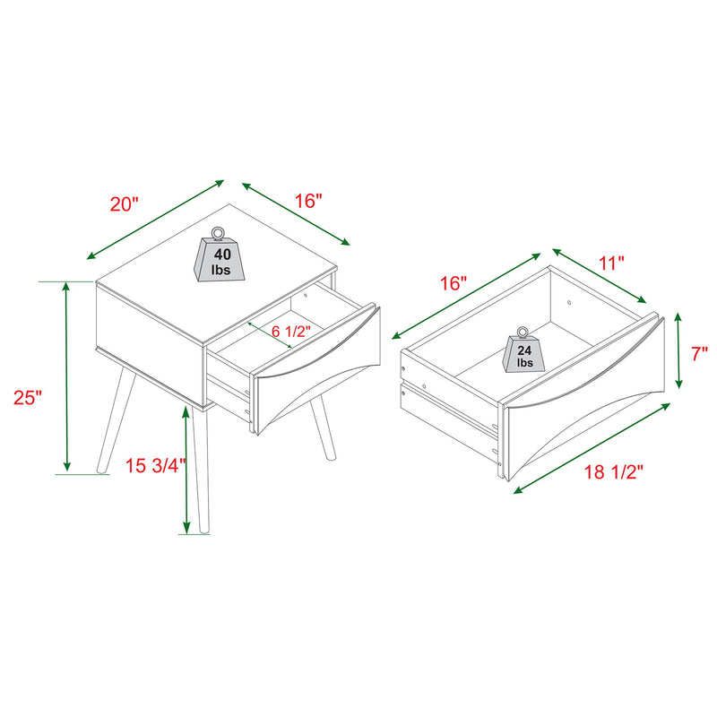 Mid-Century Modern 1 Drawer Solid Wood Nightstand - Walnut