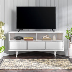 Mid-Century Modern Minimalist 3 Drawer Corner TV Stand For TVs Up To 58 - White
