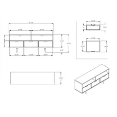Mid Century Modern 3 Drawer 58" TV Stand For 65" TVs With 2 Open Cubbies - Walnut