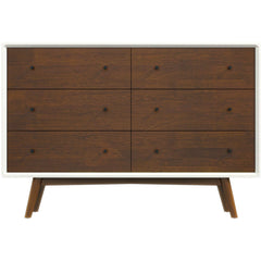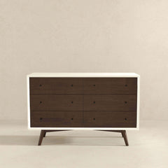 Mid-Century Modern White Dresser 6 Drawer - Dark Brown / White