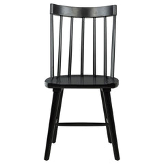 This modern Windsor-style dining side chair refreshes a classic silhouette with a trendy finish, creating a sleek, contemporary accent in any dining room. Built from solid hardwood, it ensures sturdy support and everyday durability. Its slender spindles and gently contoured back balance comfort and style. Whether for casual family meals or special gatherings, this versatile chair seamlessly complements a variety of interior aesthetics.