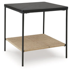 Seeking something outside the ordinary? Look no further than this casual mixed-media accent table. Its impressive black marble top and natural jute bottom shelf give the eclectic design that much more interest. Exuding a sense of ease that's sure to please, it's just the spot for displaying photos or decor accents.