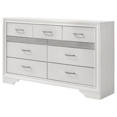 Infuse your space with sophisticated grace. The chic design of this beautiful dresser lends a touch of elegance to any bedroom. Felt-lined drawers keep delicate belongings safe and secure. A hidden jewelry drawer offers a discreet place to store your valuables. Complete with a glittery panel across the front, this piece exudes sparkling opulence.