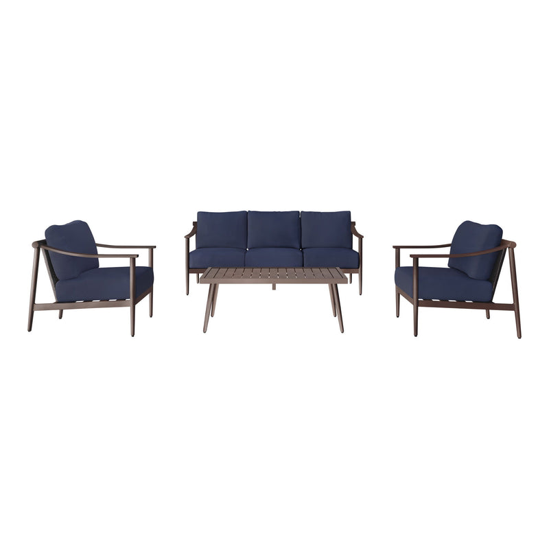 Moana - 4 Piece Outdoor Set (Sofa & 2 Club Chairs & Coffee Table) - Blue