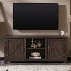 Modern Farmhouse Barn Door 3 Shelf TV Stand For TVs Up To 65” - Sable Gray