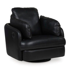 Looking cool and contemporary is great. But when it comes down to it, you’re all about affordably luxurious lounging. With the top grain leather and expertly matched faux leather on this swivel glider recliner, you get the sleek look you love without breaking the bank. Its easy one-pull reclining motion effortlessly brings you to a reclined and relaxed position. So grab some popcorn, settle in and enjoy the show.