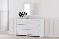 Mollviney - 6 Pc. - Dresser, Mirror, Twin Panel Bed, 2 Nightstands - White
