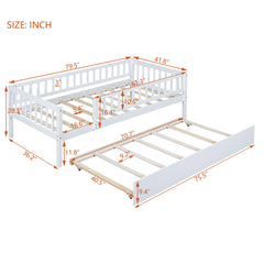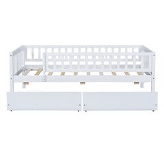 Full Size Daybed With Trundle And Fence Guardrails - White