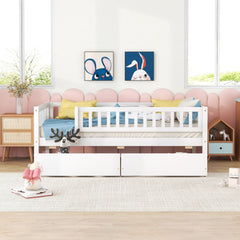 Twin Size Daybed With Trundle And Fence Guardrails - White