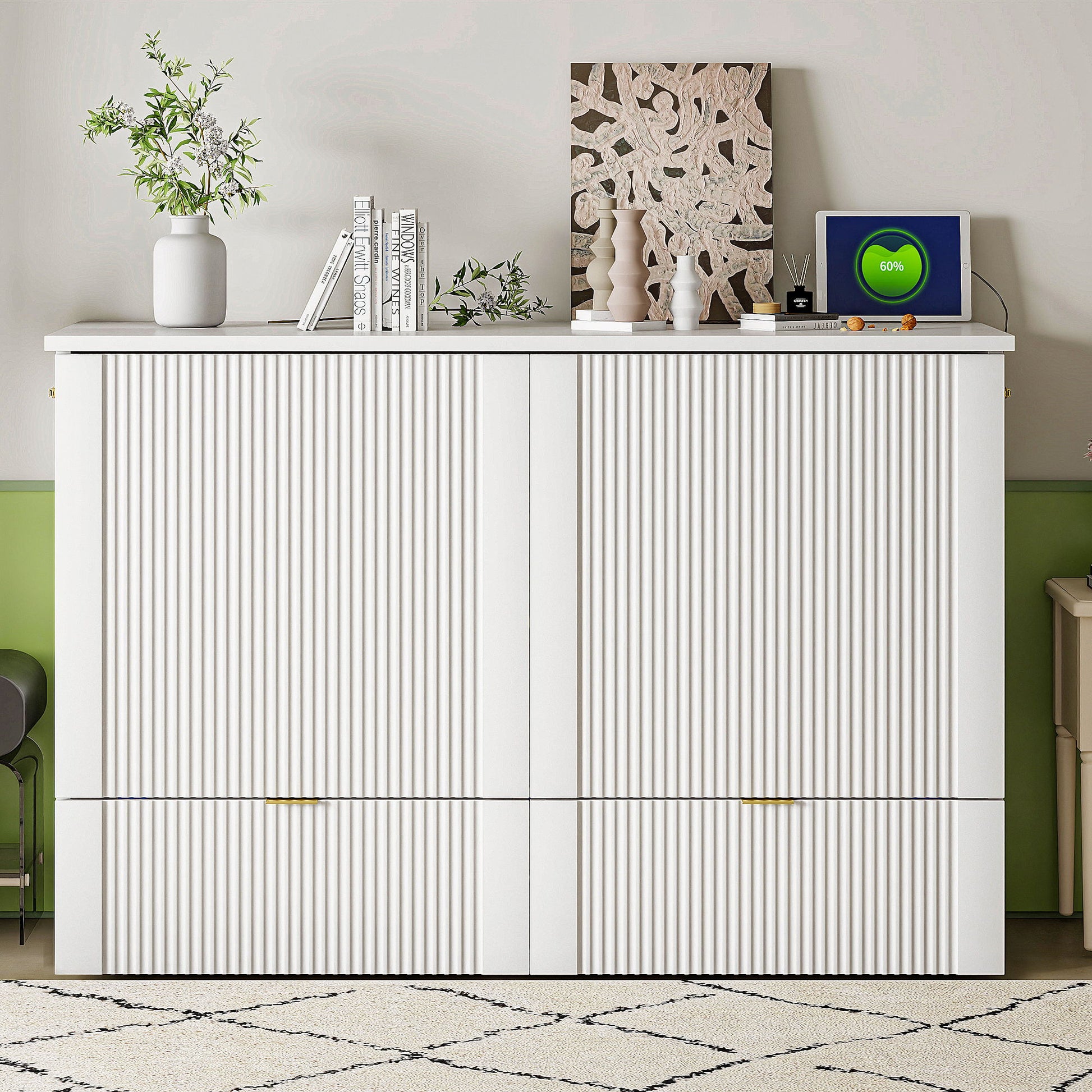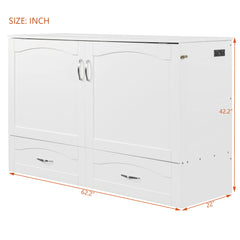 Full Size Murphy Bed With Drawer And A Set Of Sockets & USB Ports, Pulley Structure Design - White