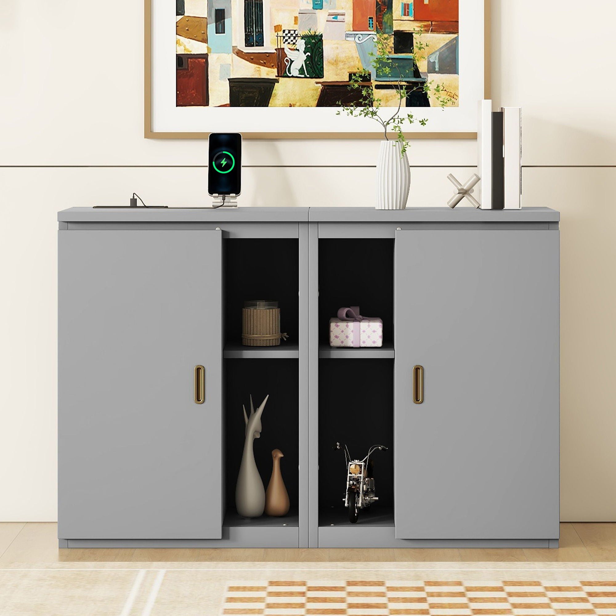 Full Size Murphy Bed With Shelves, Cabinets And USB Ports - Gray