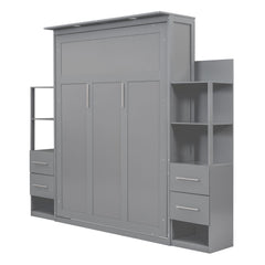 Queen Size Murphy Wall Bed With Shelves, Drawers And LED Lights - Gray