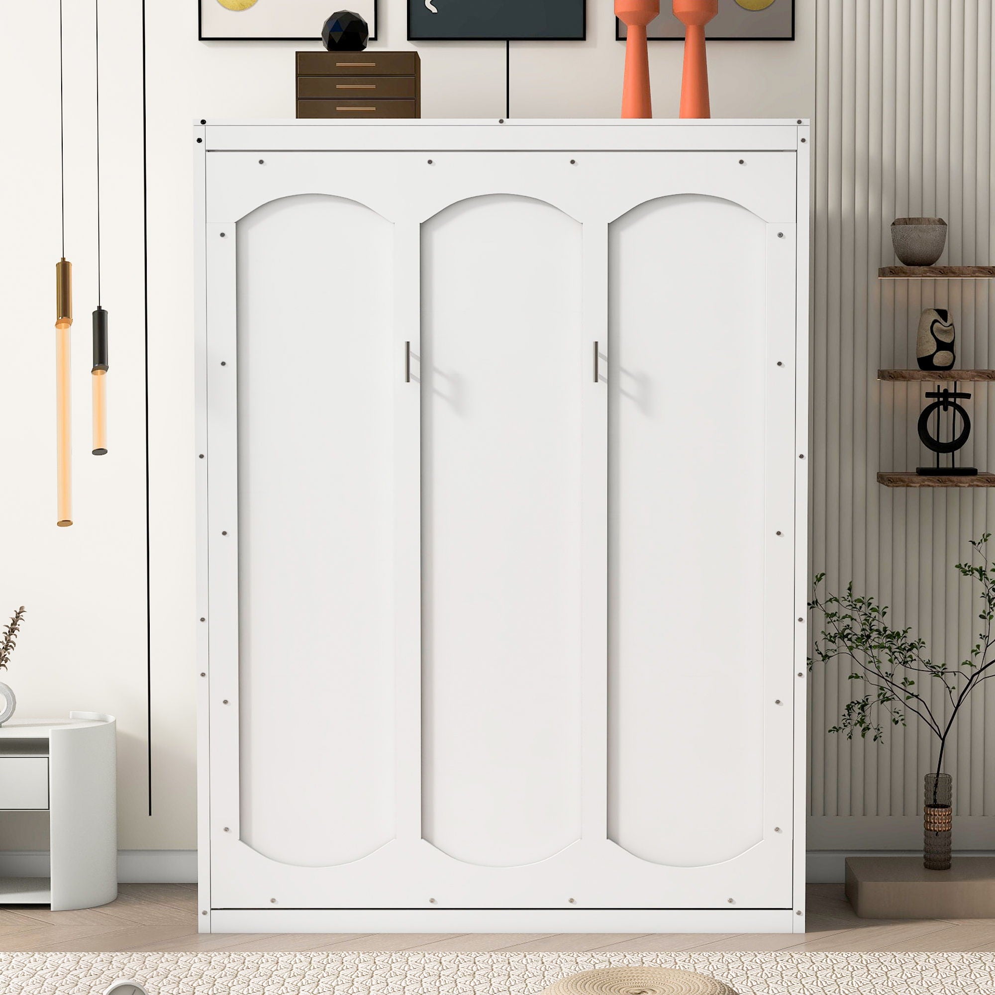 Queen Size Murphy Wall Bed With Shelves, Space Saving - White