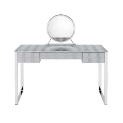 Make getting ready for a night out on the town fun with the Van chrome vanity set. From the beautifully faux crock textured case to the sturdy shiny chrome base make this a statement piece. The three ample drawers have enough room for beauty tools and supplies. The built-in outlet and USB ports come in hand