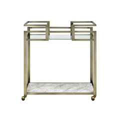 Neilo - Serving Cart - Clear Glass, Faux Marble Top & Wire Brass
