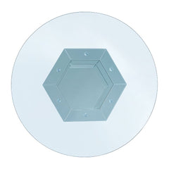 - Mirrored Pedestal Base with Faux Diamonds Inlay: Beveled Mirror, MDF, Acrylic Faux Diamonds (Silver MDF Bottom Base); Hexagonal Shape Size: 30" x 30"