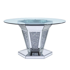 Noralie - Dining Table - Mirrored, Faux Diamonds & Clear Glass Top