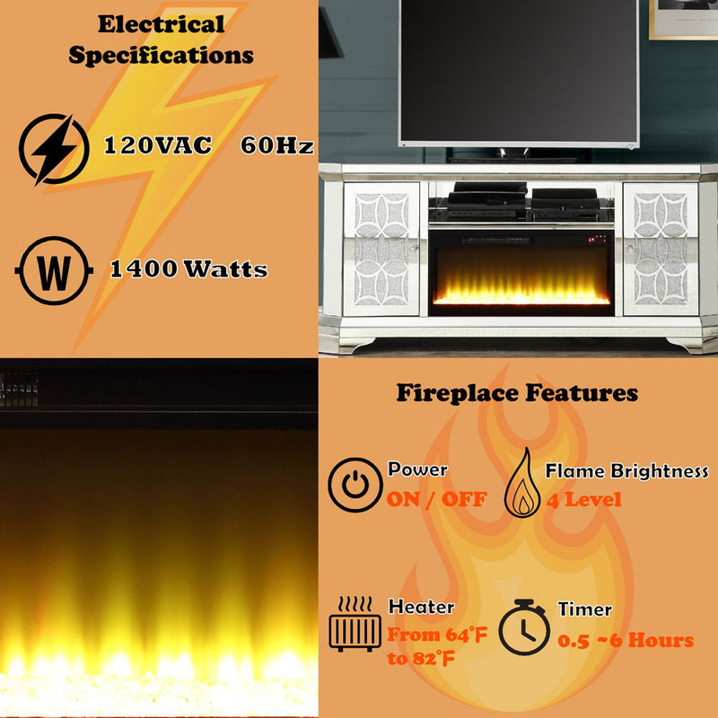 Noralie - TV Stand With Fireplace - Mirrored & Faux Diamonds