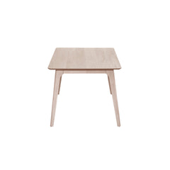 The Oscar Mid-Century Modern Wood Dining Table is a perfect blend of timeless style and practical functionality for your dining space. Crafted from solid Rubberwood and Ash Veneers, this dining table is designed to last, providing a durable and long-lasting centerpiece for your meals. The table features a clean, subtle white wash finish that enhances the natural beauty and grain patterns of the Ash, adding warmth and sophistication to your decor. The design of the Oscar Dining Collection emphasizes clean lines, organic curves, and a focus on functionality, reflecting the classic mid-century modern style. This aesthetic balance of form and function creates an inviting and practical living space. The table comfortably seats up to six people, making it versatile enough to fit into kitchen nooks, small dining areas, or your main dining room. With its elegant design and robust construction, the Oscar Dining Table is a standout piece that seamlessly integrates into any contemporary living space, offering both style and utility.