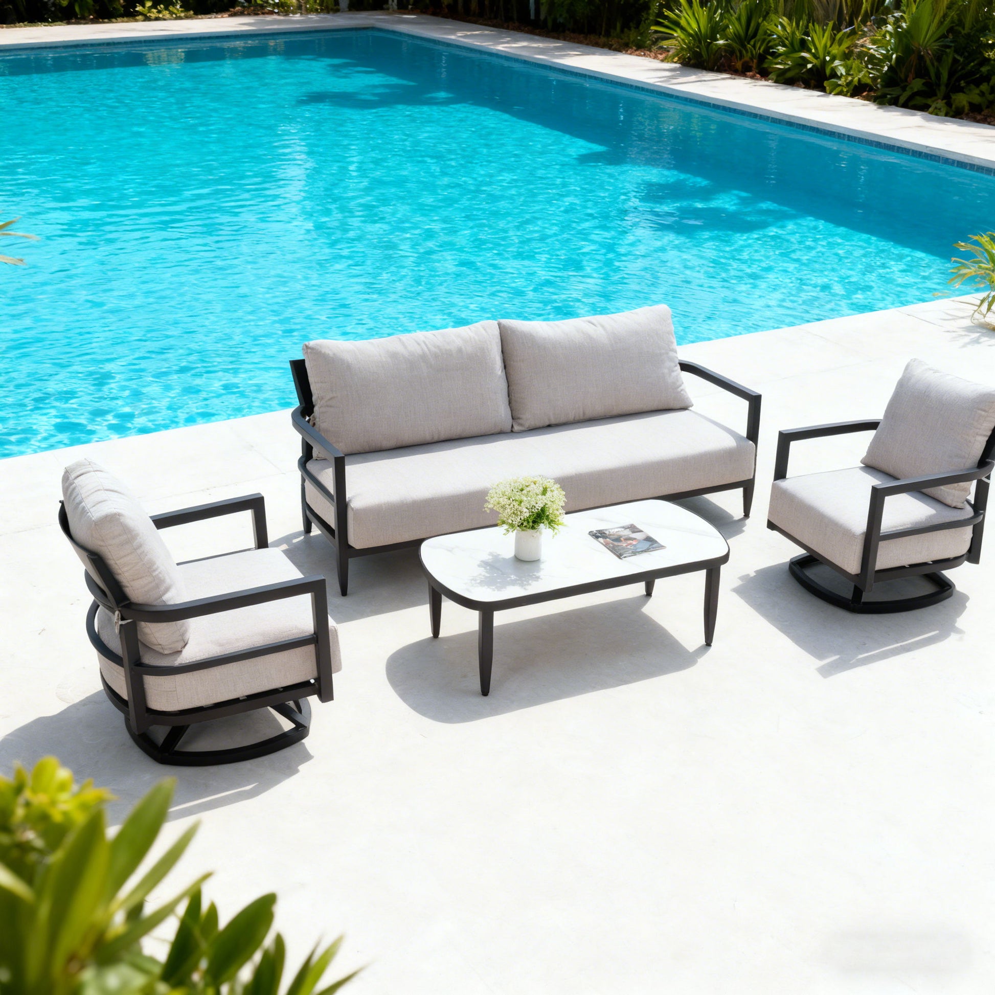 - Premium Sunbrella Cushions: Fade-resistant, stain-proof fabric with high-density foam and breathable Textilene base for lasting comfort.