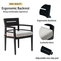 Outdoor Modern Dining Set, Chairs Sunbrella Cushioned And Dining Table With Umbrella Hole