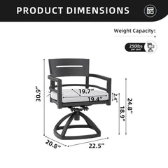 Outdoor Patio Swivel Rocker With Outdoor Grade Sunbrella Fabric Cushions (Set of 2) - Ember Black