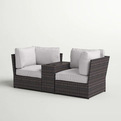 - Complete 3-Piece Set: Includes 2 modular sectional units forming a loveseat, 1 side table with cup holders, and 6 cushions