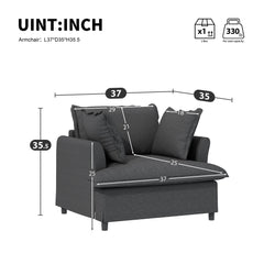Oversized Single Seat Sofa Module For Modular Sectional Wide Seat, Armchair With Pillows Modern Upholstered Comfy Single Couch Lounge - Gray