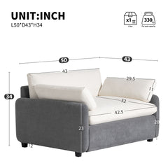 Oversized Single Sofa Chair Wide And Deep Seat, Modern Upholstered Comfy Blocking Couch Lounge With Pillows - Gray / Cream