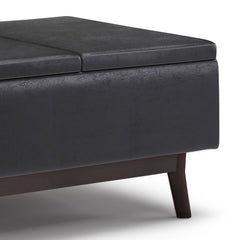 Owen - Tray Top Small Coffee Table Storage Ottoman - Distressed Black