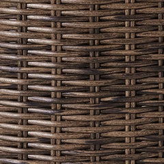 Collection has hand woven resin wicker with rust free aluminum frames with a brown wood-look finish. All cushions and throw pillows are made with Nuvella high performance fabric. Choose from dining, bar table and seating sets. For dining, choose from stationary dining chair or swivel rocker dining chair. 56" square bar table includes 55,000 BTU CSA approved stainless steel burner, enclosed storage area with shelves. Stools have fast dry foam seats below the woven resin wicker to provide comfort. No seat pads needed for barstools. To order a 9-piece bar table set, order P750-130(4) and P750- 665. Assembly required for all skus.