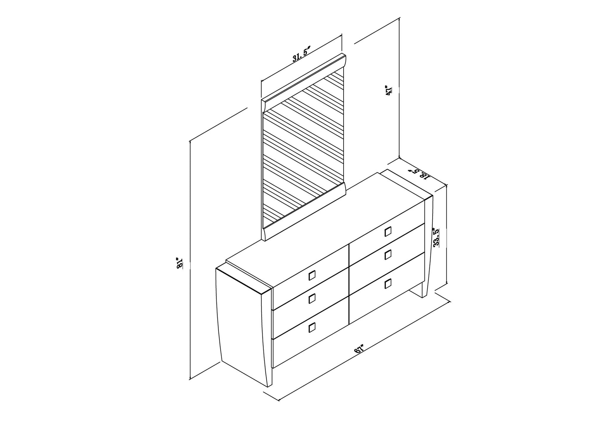 67.0"W x 19.0"D x 34.0"H - 194.0 lb