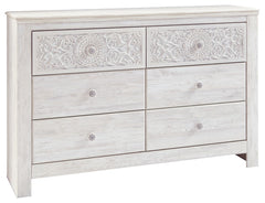 Paxberry - Six Drawer Dresser - Medallion Drawer Pulls - Whitewash