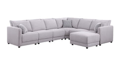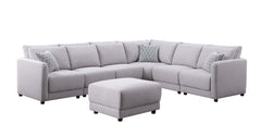 Penelope - Linen Fabric Reversible 7 Piece Modular Sectional Sofa With Ottoman And Pillows - Light Gray