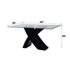 KD, Rectangular Pedestal Table • NO Storage • Glass Top: 10mm Clear Tempered, Fixed Top (NO Extension Included) • High Gloss Pedestal •• CONSTRUCTION •• Glass Top: Glass Top: 10mm Clear Tempered Glass w/25mm Beveled Edge • Pedestal "X" Shape: High Gloss Finish