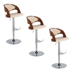 Pino - Mid-Century Modern Adjustable Barstool With Swivel With Rounded T Footrest (Set of 3) - Chrome / Walnut / Cream