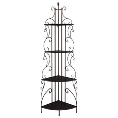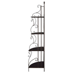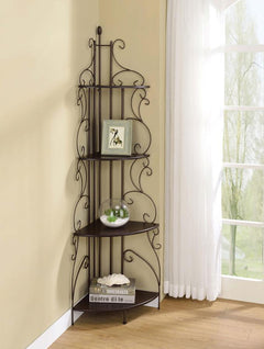 Ratchet up the romance in a traditional space. Designed to bolster the traditional look of a central living space, this corner bookcase is a great choice. Four graduated tiers create a subtle silhouette and offer plenty of space to display books, decor, and potted plants. Made from steel and wood-like material, it blends an earthy elegance with old fashioned charm. Warm any space with its luscious cappuccino and copper finish.