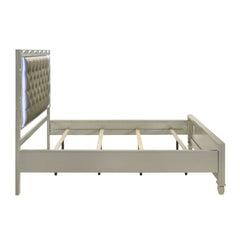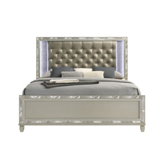 Discover the Radiance Bed, meticulously crafted for enduring stability and durability from a combination of Solid Rubberwood and manufactured woods. Its semi-gloss lacquer finish adds a silky, modern touch to this captivating collection. Glossy textured inlays, mylar trim, and a crushed crystal decorative laminate frame the plushly upholstered, crystal button-tufted headboard, exuding opulent appeal. Designed with functionality in mind, LED lighting accents your space, casting a sparkling glow against the glamorous padded headboard. Transform your bedroom into a haven of luxury and style with the Radiance Bed.