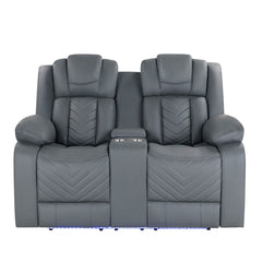 Raize - 3 Piece Power Living Room Set With Storage Console And Cup Holders - Gray