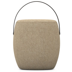 - Features a space-conscious round shape with a wood handle detail that is great for moving the footstool
